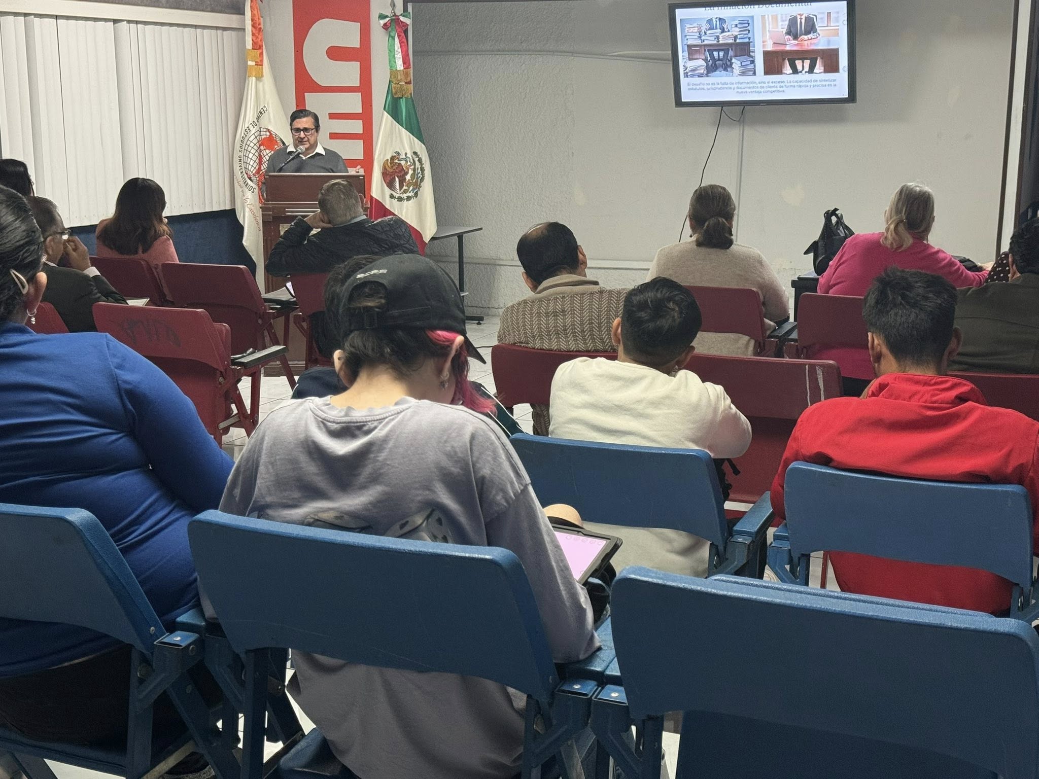 El pasado 29 de noviembre, en las instalaciones del Audiovisual del Campus América, se llevó a cabo la plática titulada “La Inteligencia Artificial para Abogados”, en la cual se abordaron temas de gran interés relacionados con las consecuencias, usos y aplicaciones de la inteligencia artificial en el ejercicio profesional del Derecho.